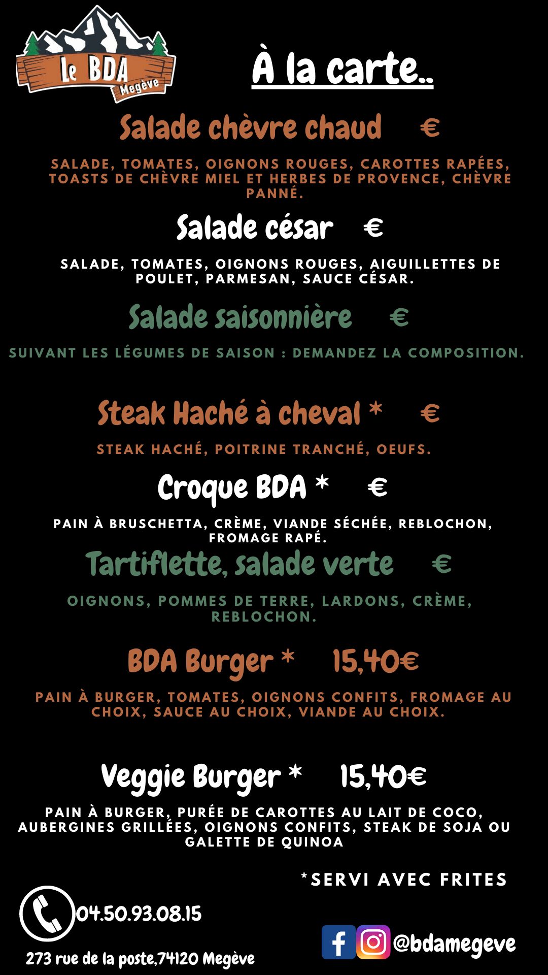Du café à l'apéro en passant par le déjeuner pour lequel nous vous proposons un menu du jour à 15,50€ et des plats à emporter: salades, burgers...